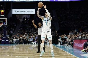 鲍尔上半场出战15分28秒,投篮9中4,全部为三分出手,砍下12分5篮板5助攻,目前三分命中总数仅比克尼佩尔少一个。
